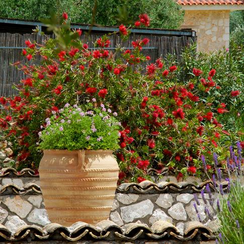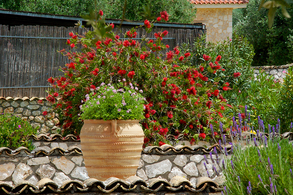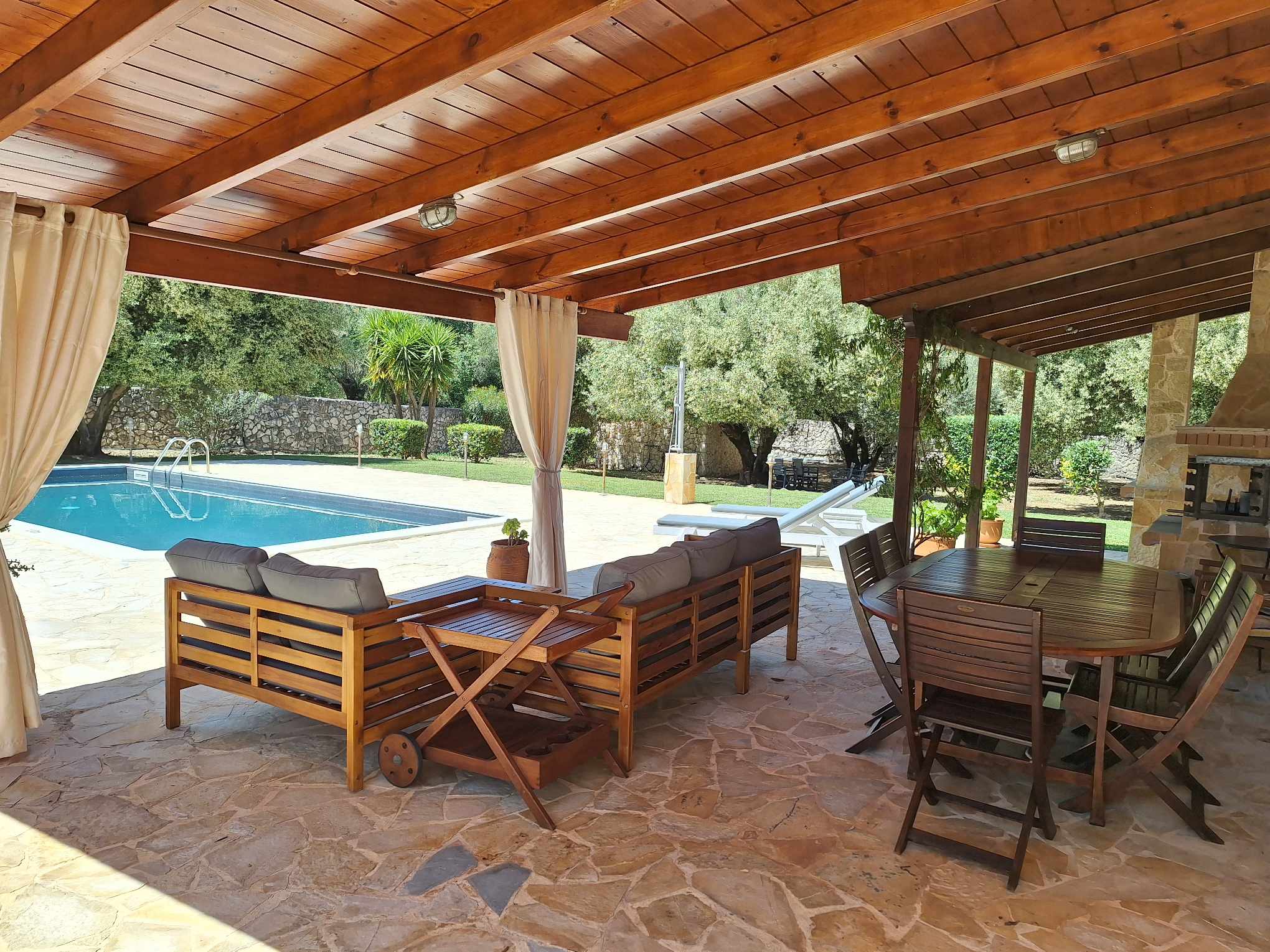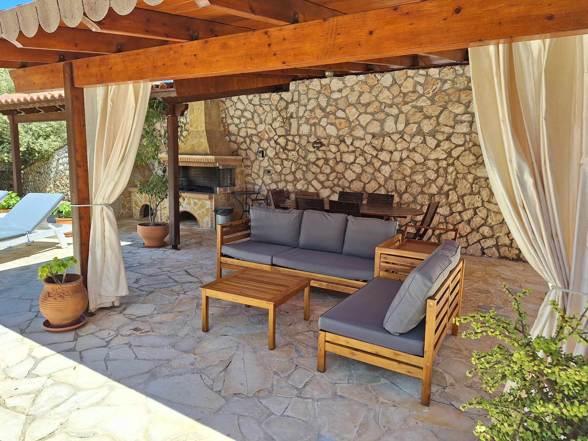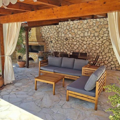 with dining table and chairs and BBQ. Private garden surrounded by olive trees.