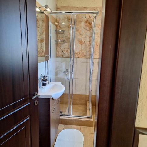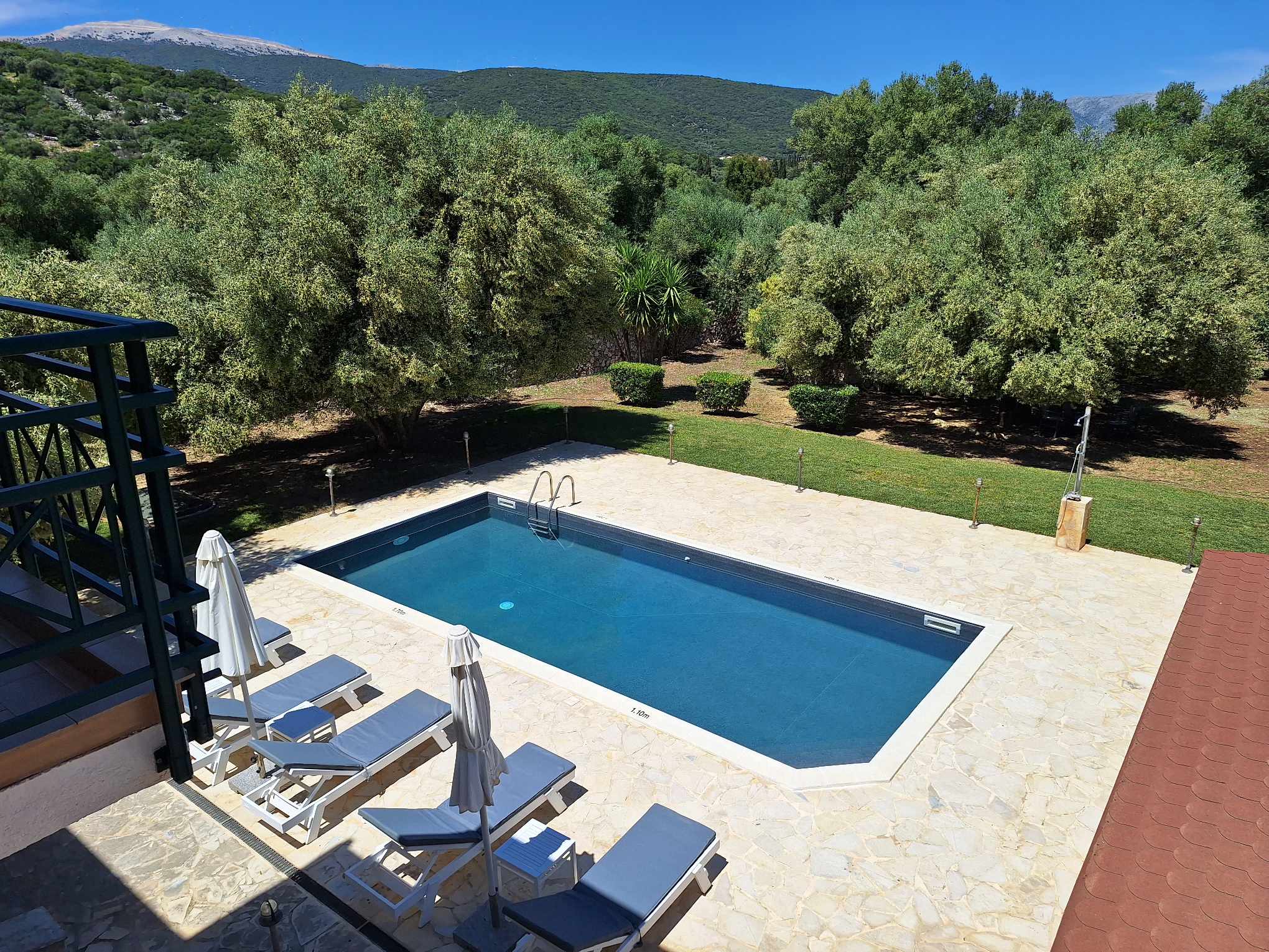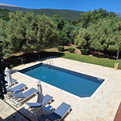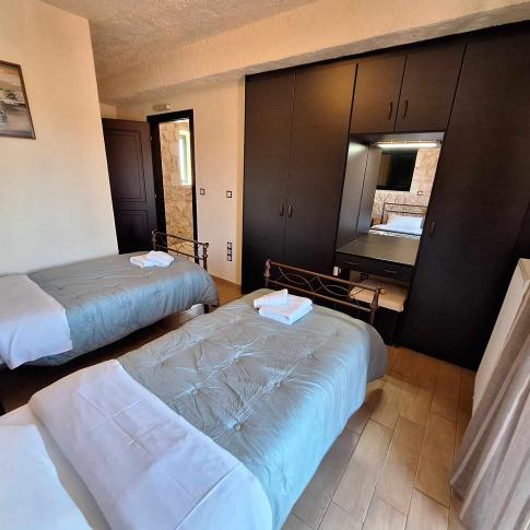 Upstairs you wiII find two bedrooms, one double and one twin bedded with ensuite bathrooms. Balconies leading off the bedroom overlook the ροοl area and have views to the mountains.