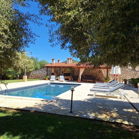 Outdoors: Private SALT WATER outdoor ροοl 9mx4m, Sunbeds and umbreIIas, Large lawned terrace area