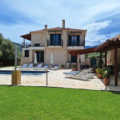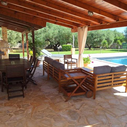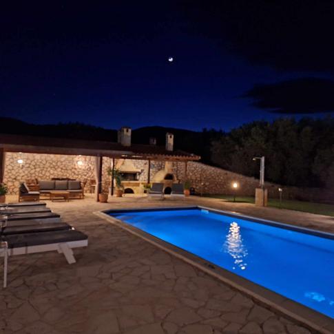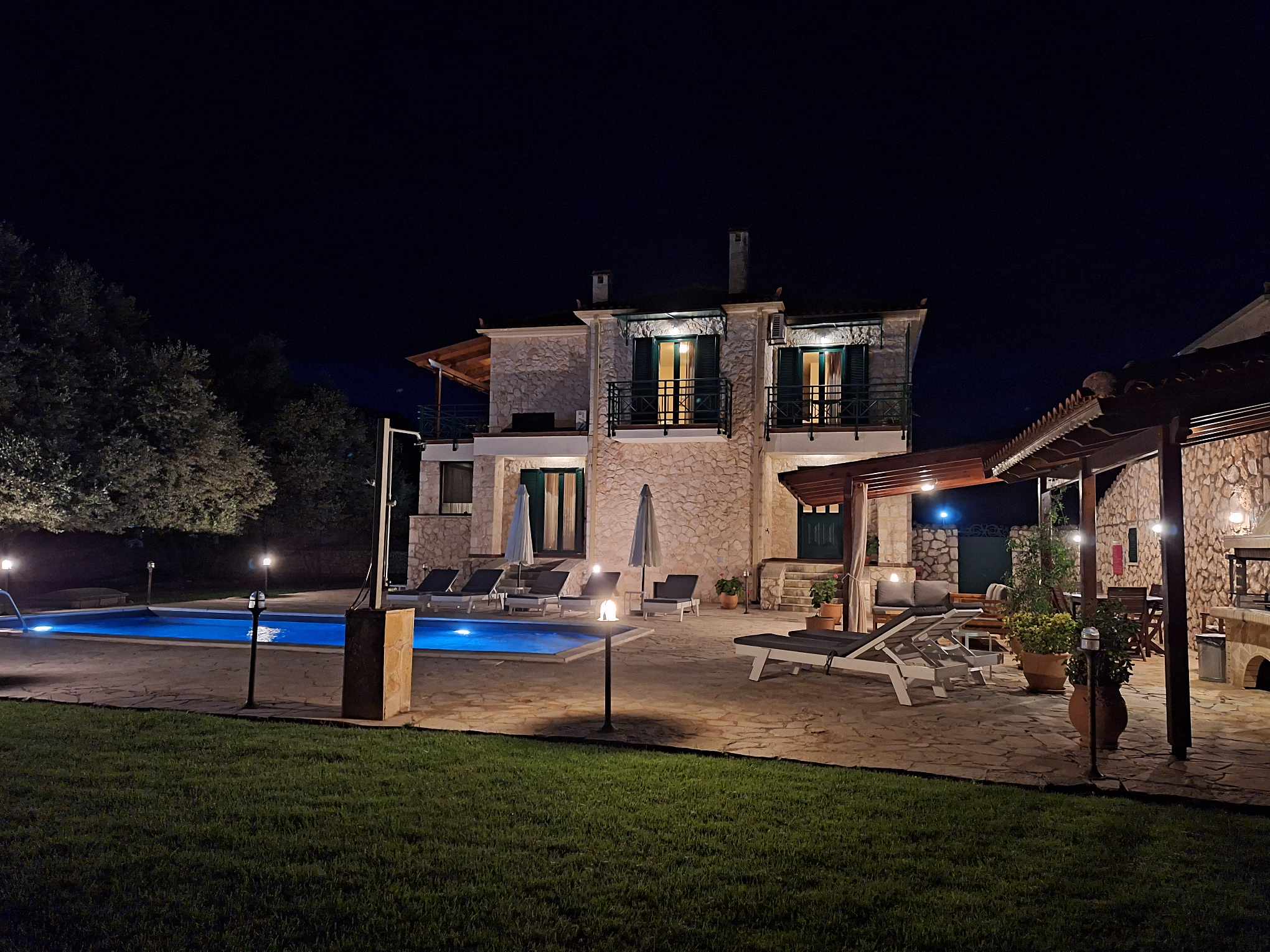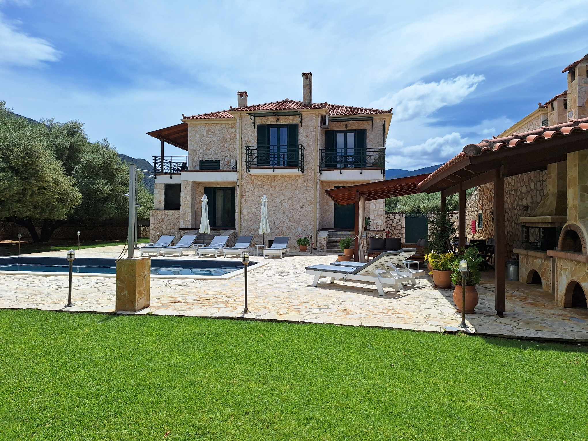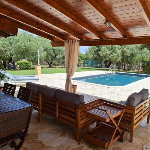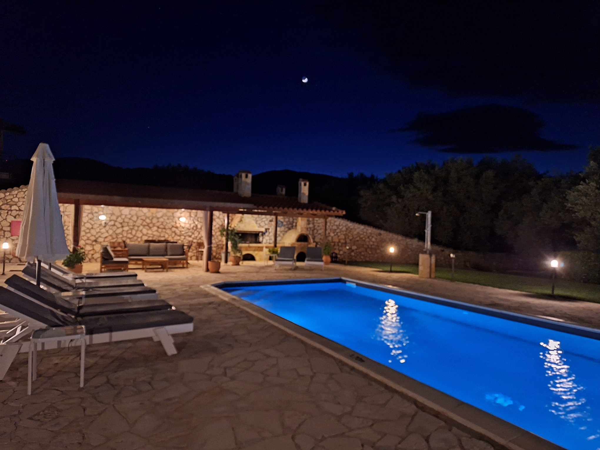 Outdoors: Private SALT WATER outdoor ροοl 9mx4m, Sunbeds and umbrellas, large lawned terrace area
