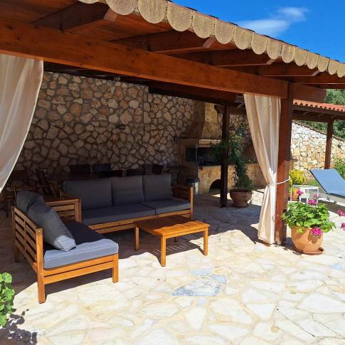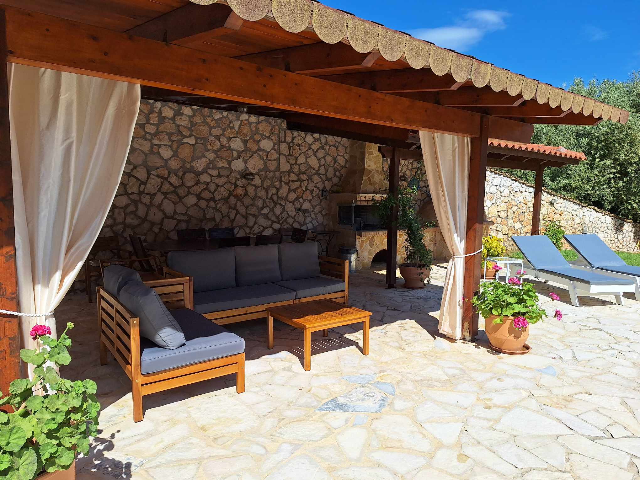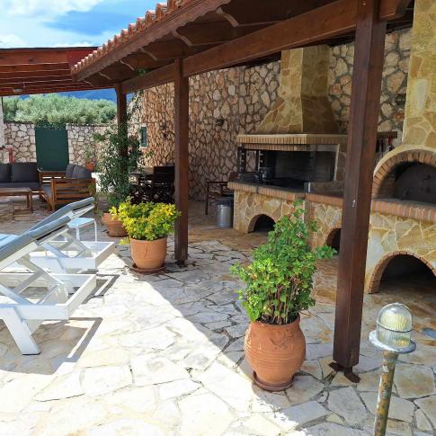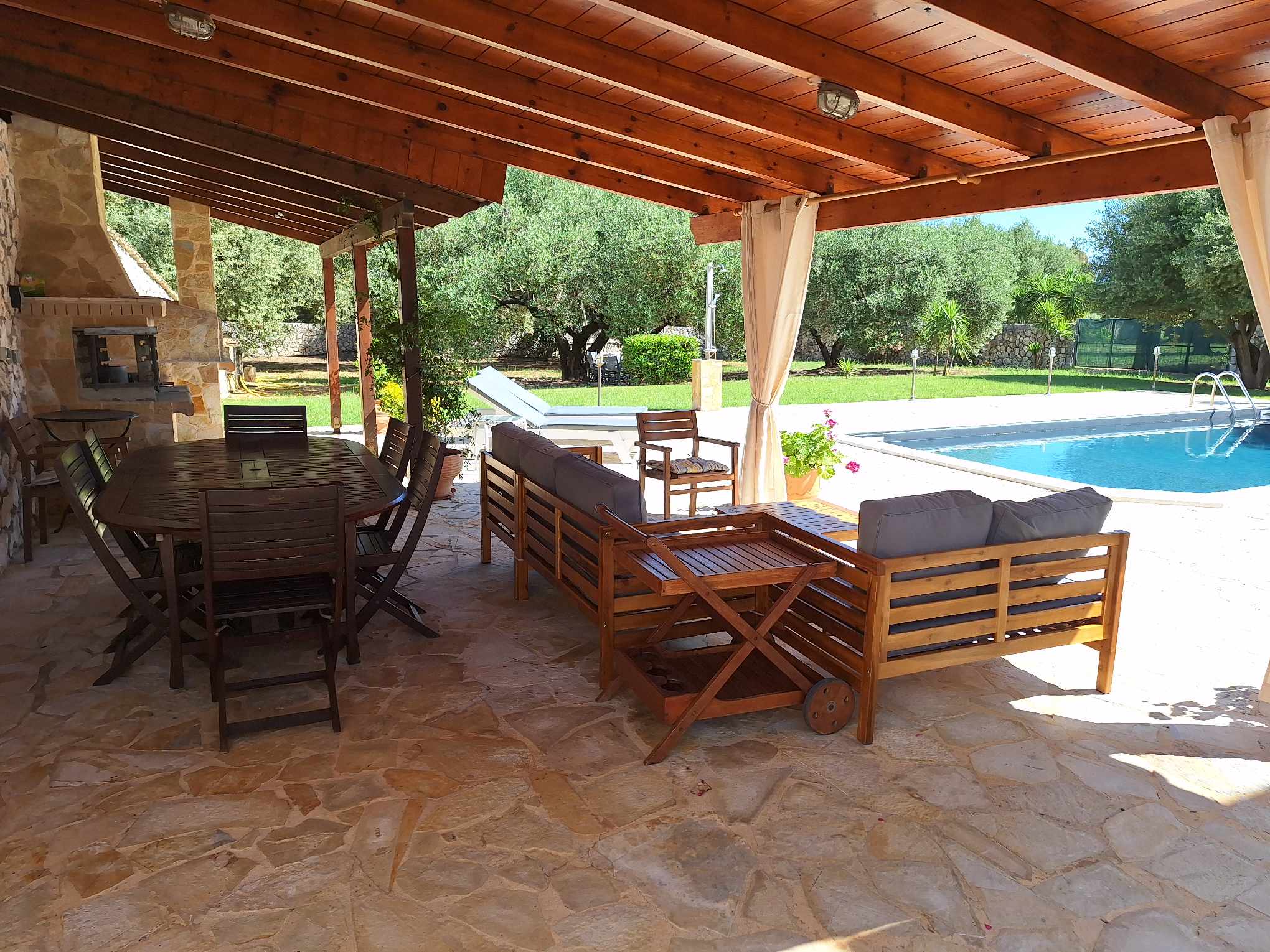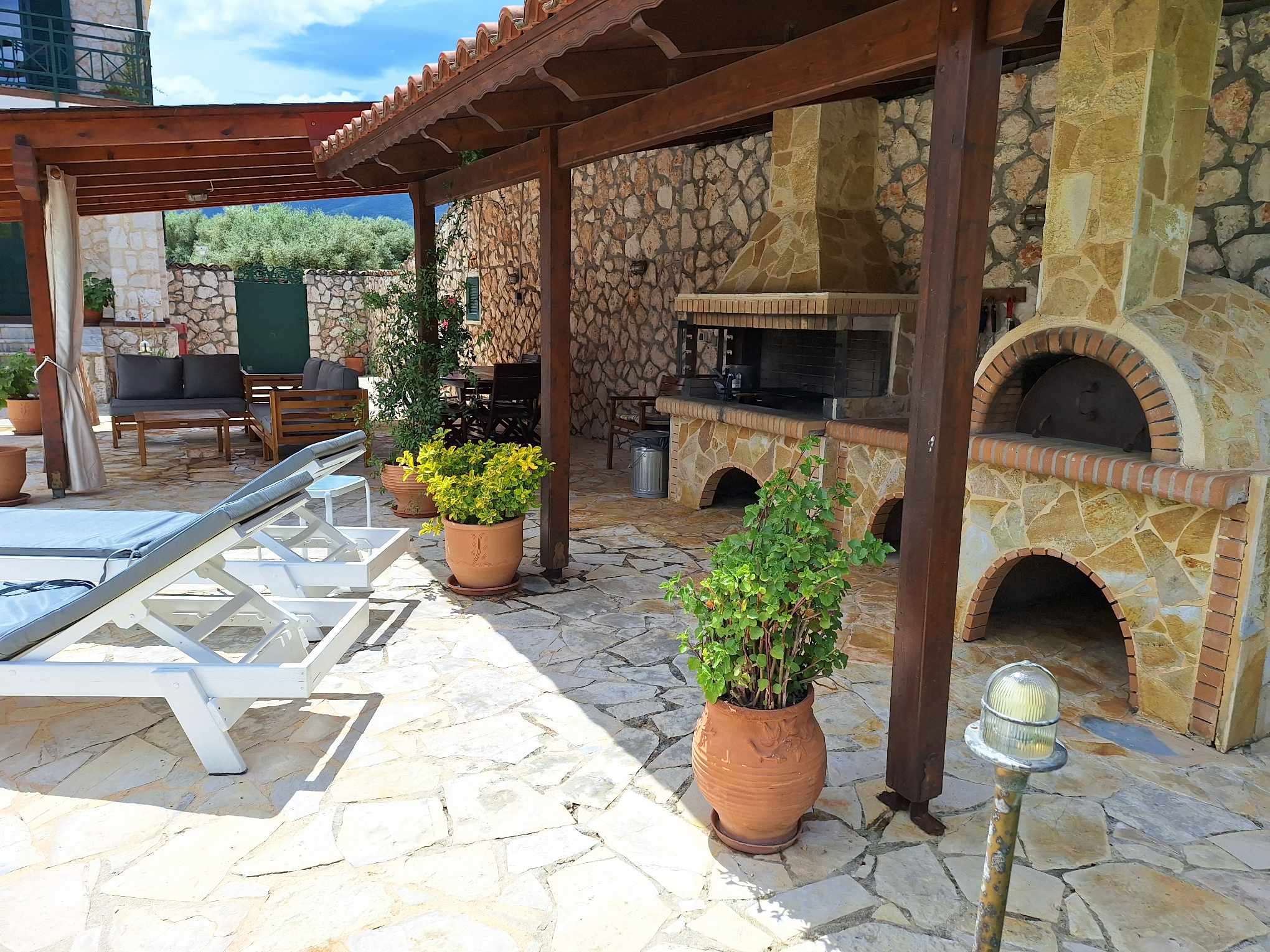 with dining table and chairs and BBQ. Private garden surrounded by olive trees.