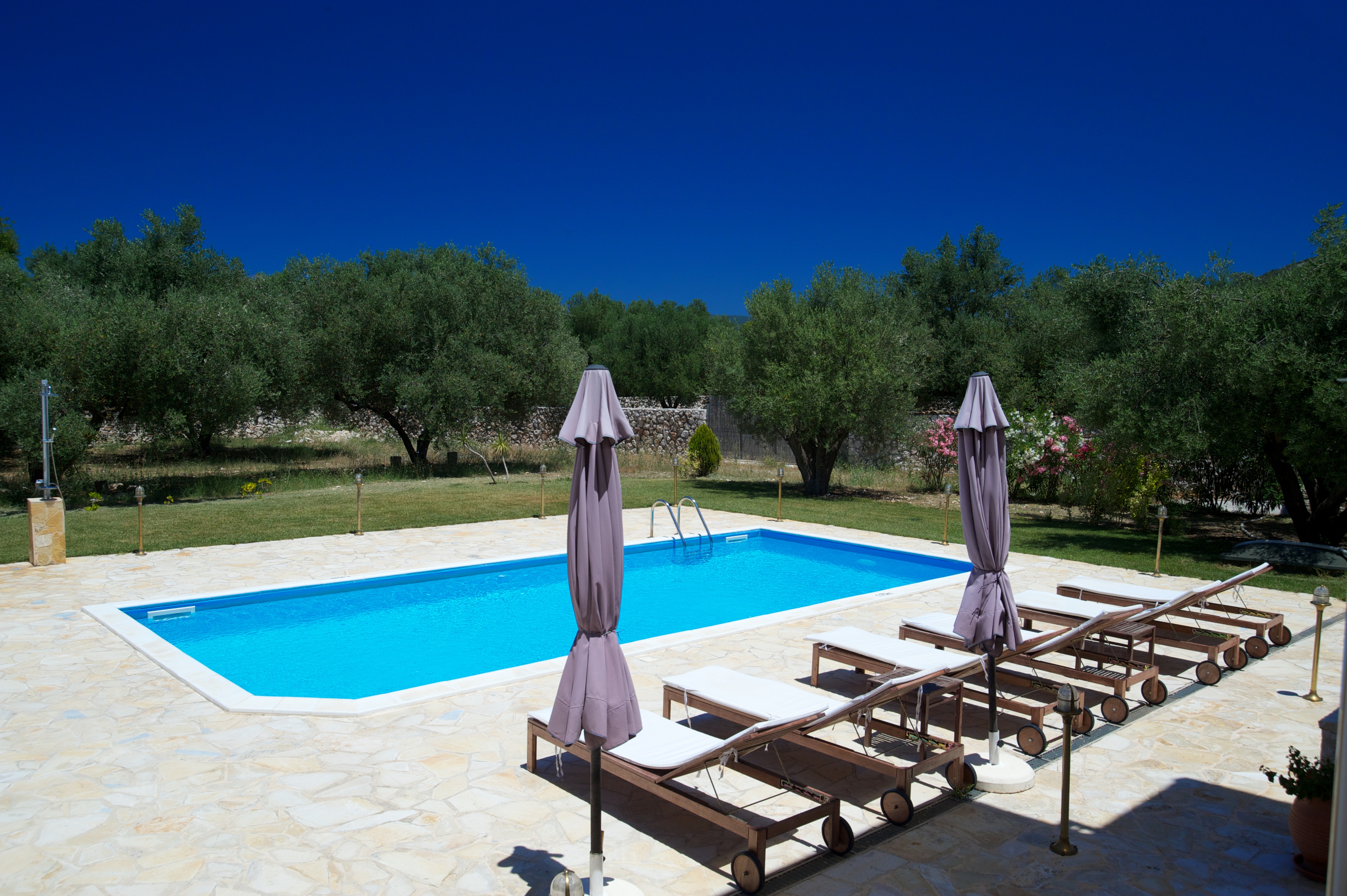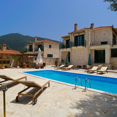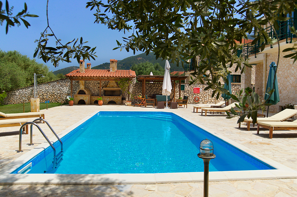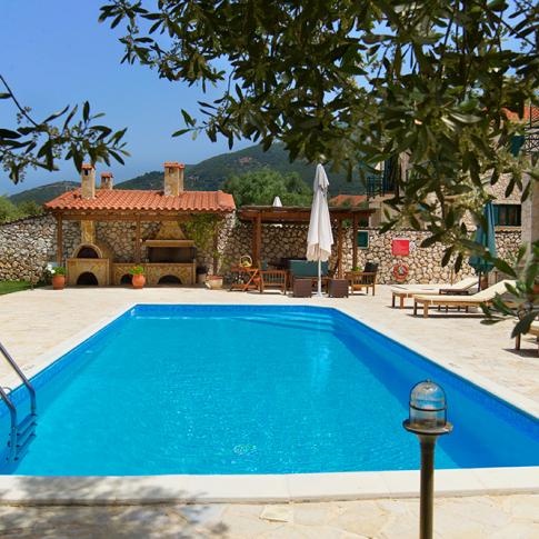 A peaceful location in an olive grove far away from the main road with beautiful views of verdant mountains and the island of Ithaca guarantee relaxing holidays. Both villas have their own pool and barbeque, while the crystal clear Ionian Sea is only 1km away. Village of Sami is 2km away from the Olive Garden Villas. There you can shop or enjoy a delicious Ξµdinner in one of the many Greek tavernas. In Sami there is also the nearest post, bank, supermarket and the health center. It is about 38 kilometres from Sami to the airport of Cephalonia