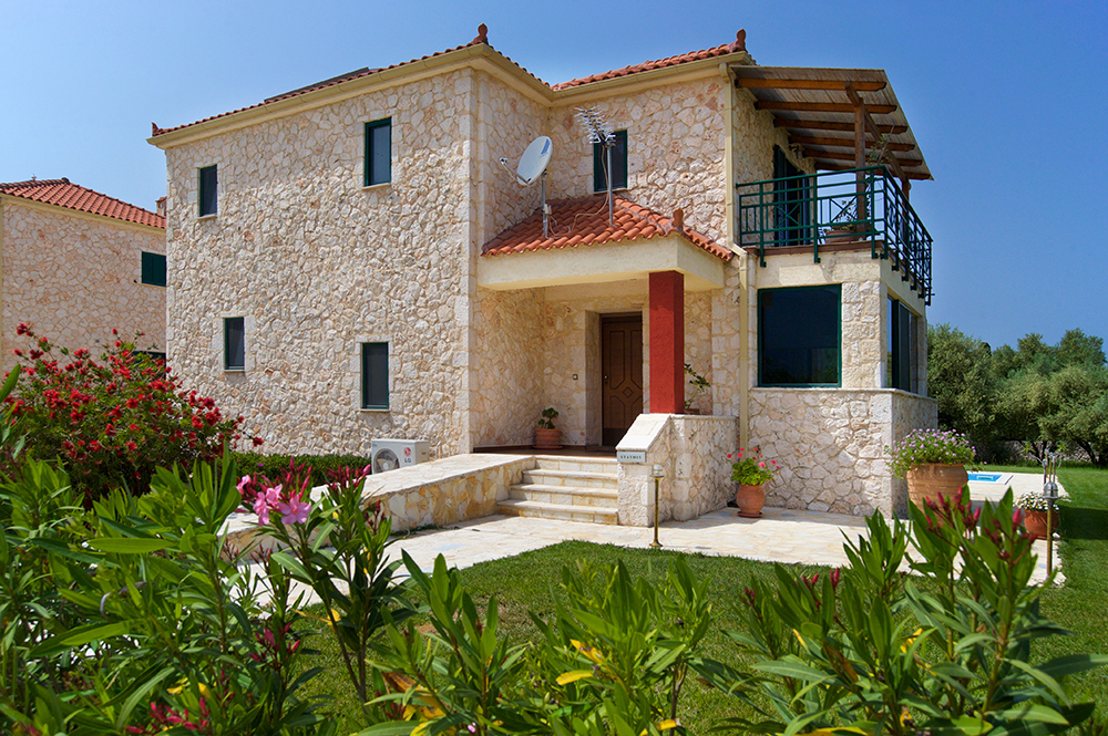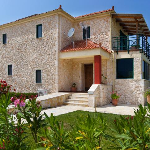 The twin stone villas “Stathis” and “Erotokritos” were built 2008 with traditional way using Cephalonian stone. Each stone was individually cut by hand. Both villas have their own private garden about 1500m2, each surrounded by olive trees. In these villas you enjoy both traditional Greek atmosphere and modern luxury.